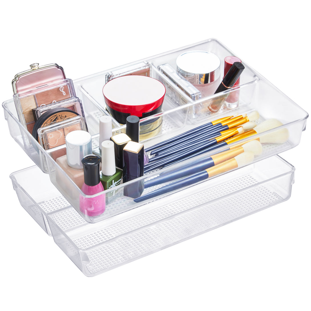Leeden Clear Drawer Organizer, Drawer Divider Tray for Desk Shallow Cosmetic Organizer, Clear Plastic Storage Trays for Dressing Table,Bathroom (12.99“Lx8.98"W 2.32” Height, 2 Packs)