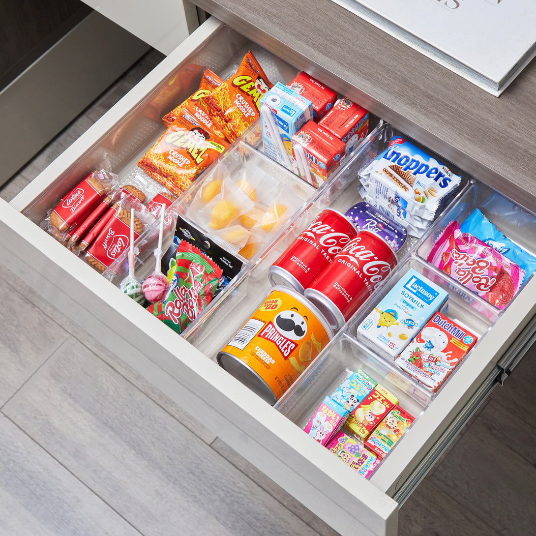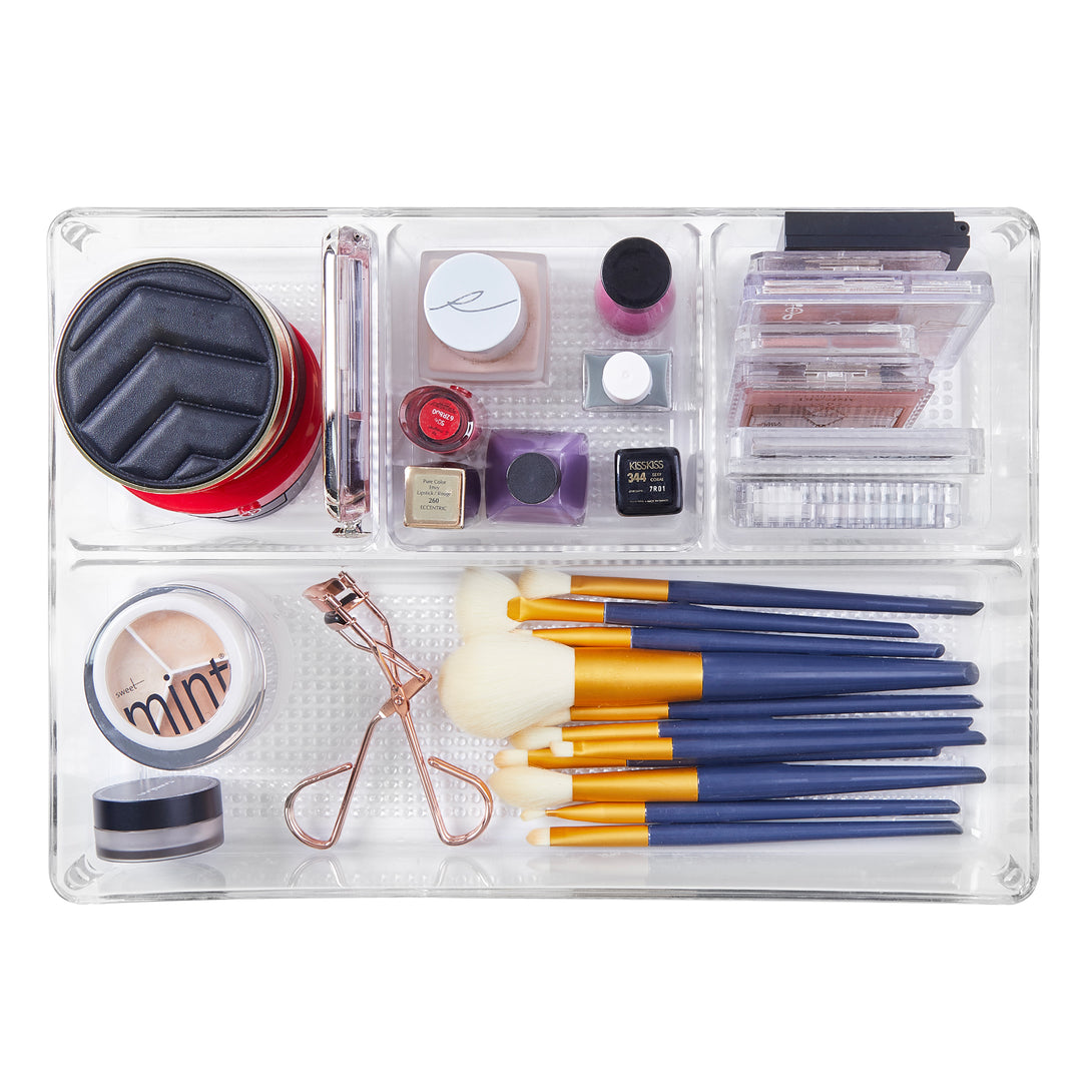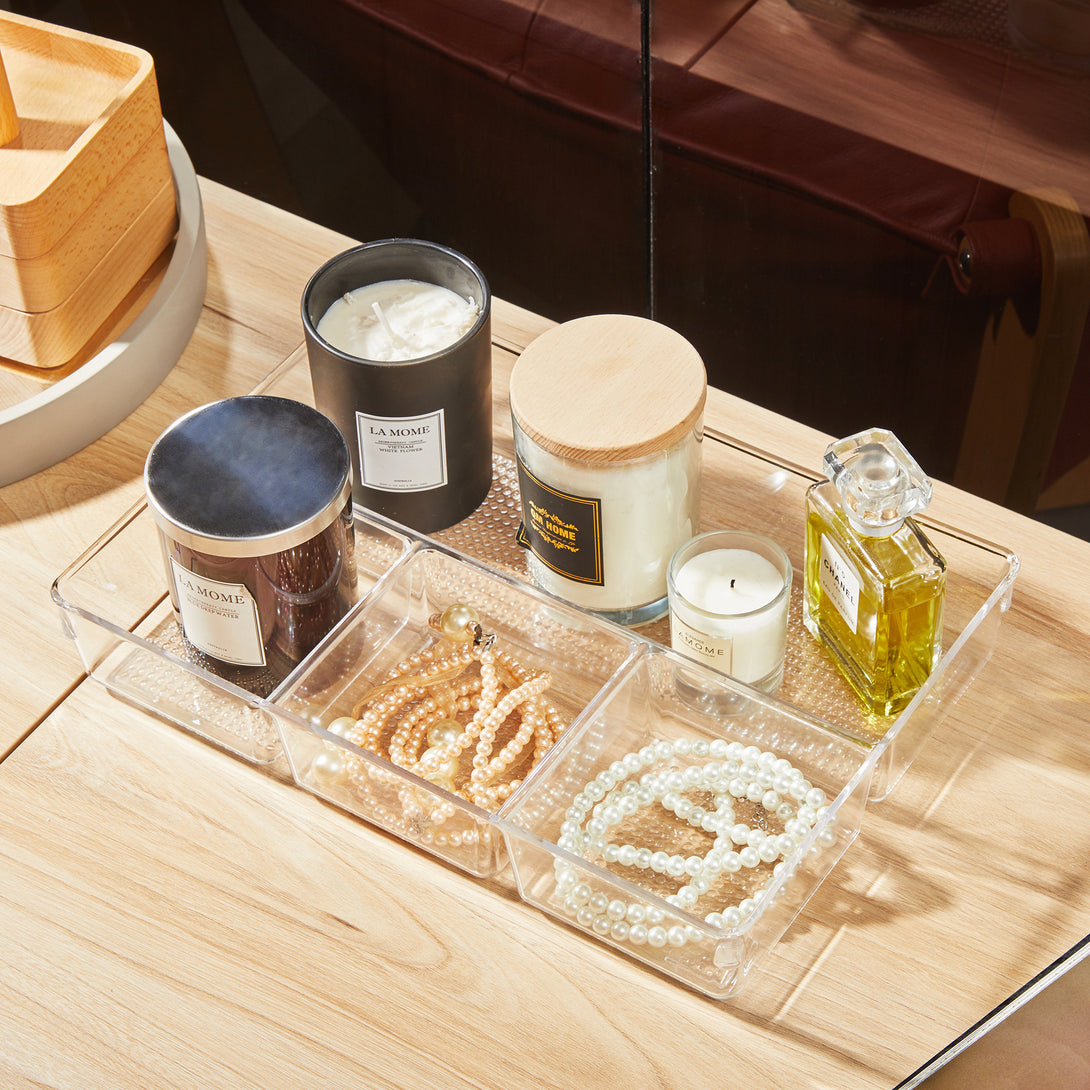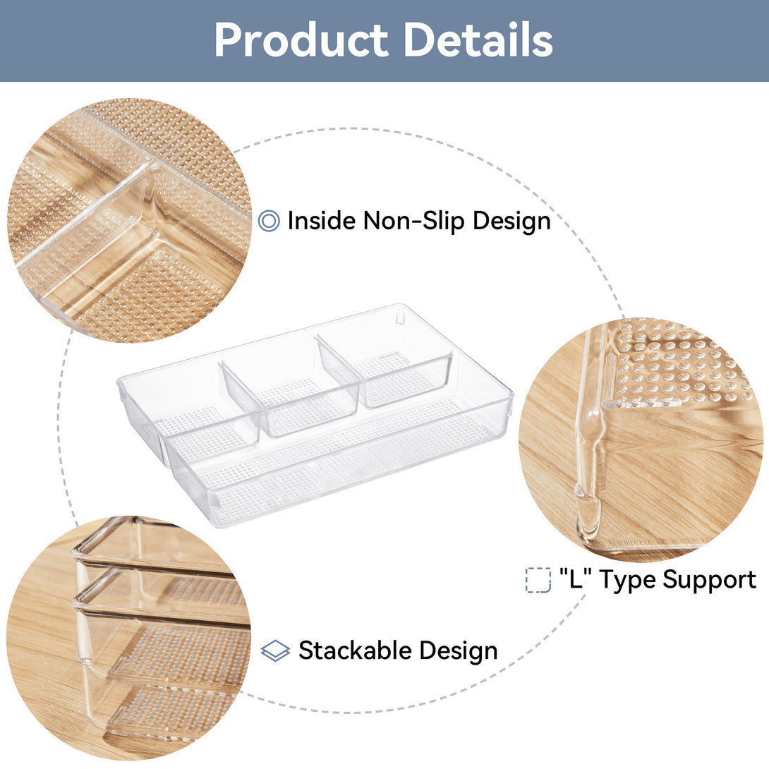 Transform your cluttered drawers into organized spaces with this versatile 8-section clear acrylic drawer organizer. Measuring 13.7 x 8.7 x 2 inches, this large divider tray is perfect for keeping your items sorted and easily accessible. The transparent design allows you to quickly locate what you need, while the sturdy construction ensures long-lasting use. Whether you're organizing office supplies, bathroom essentials, makeup collections, or miscellaneous items, this drawer organizer helps maintain order and efficiency. The eight compartments provide ample space for sorting different categories of items, making it an ideal storage solution for your desk, vanity, or bathroom drawer. Keep your space tidy and your items properly segregated with this practical and stylish drawer organizer.
