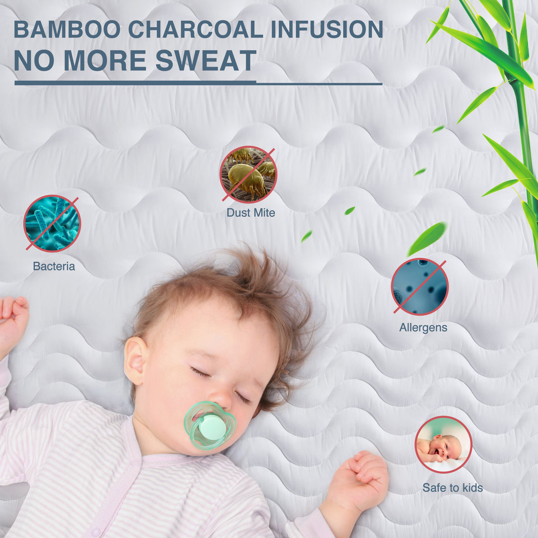 Leeden Mattress Pad Queen Size, Cooling and Breathable Stretches up 8-21" Deep Pocket, Bamboo Charcoal Infused, White