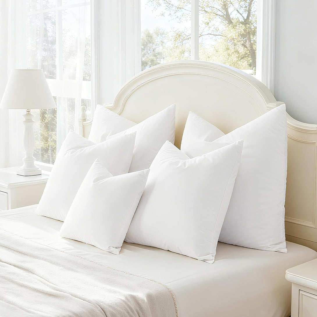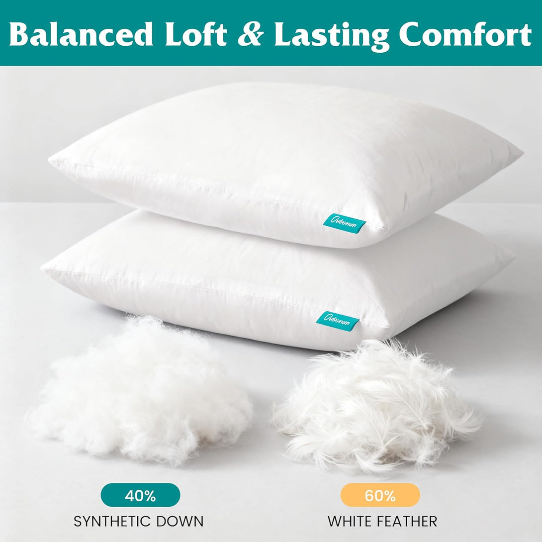 - Natural Comfort with Mixed Fill - Each pillow insert is generously filled with a premium blend of 60% white feather and 40% synthetic down, offering plush yet supportive comfort that mimics the feel of real down