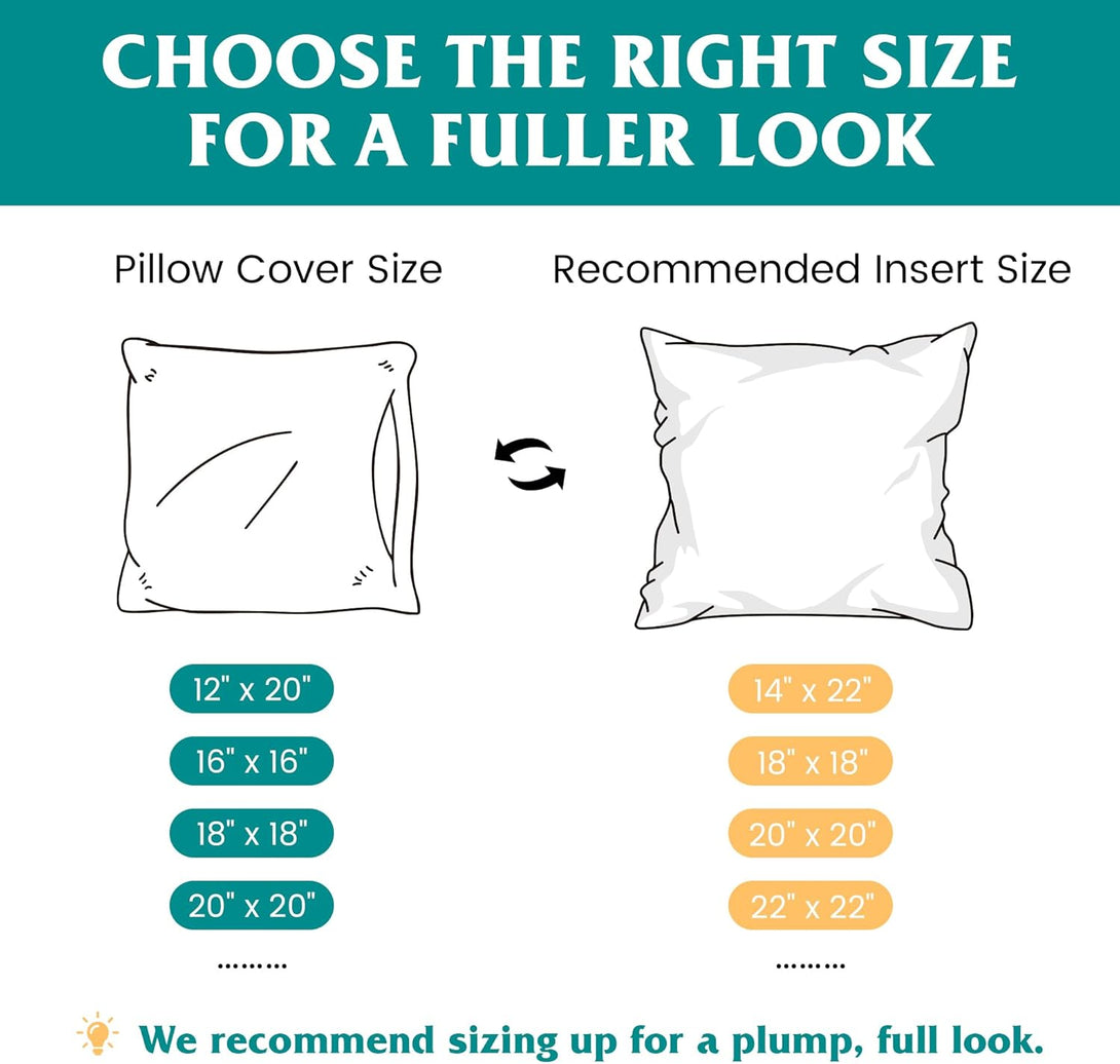 - Size Tip & Easy Care – For a plump and full look, choose an insert 1–2 inches larger than your pillow cover. Machine wash cold separately on a gentle cycle. Do not bleach. Tumble dry low.