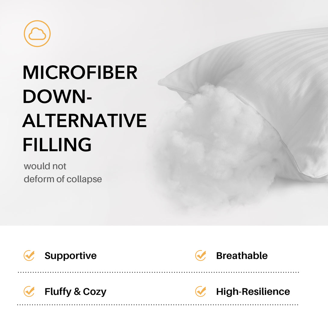 - Soft Cushions: These pillow inserts are filled with an abundant amount of high-quality 100% 3D polyester filling, noiseless, ultra-soft, highly supportive, and elastic. The striped pillowcase can firmly protect the filling and reduce its movement, which reduces the need for adjusting the filling position